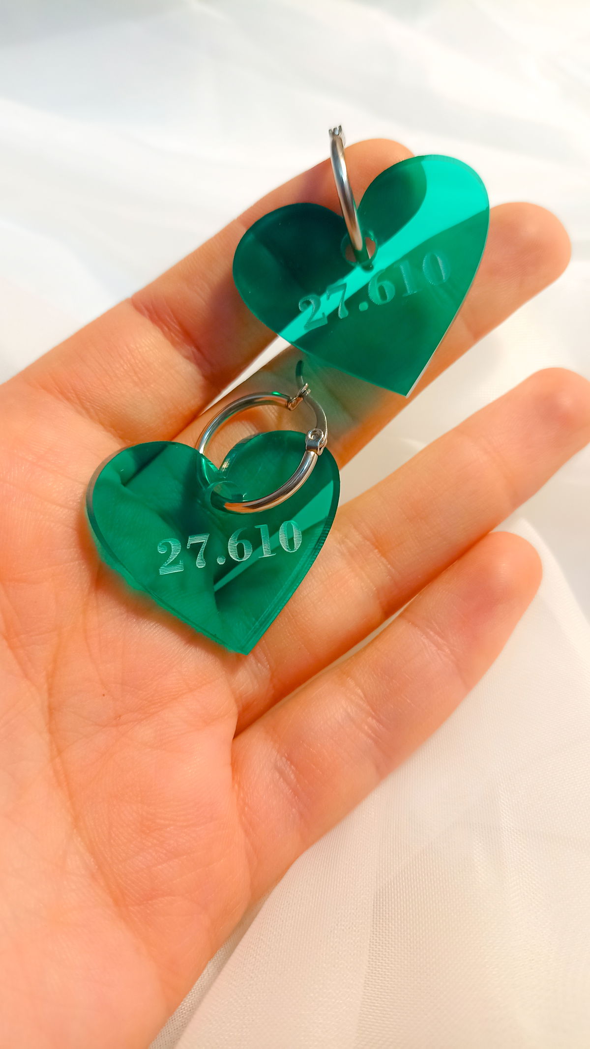 Aros de acrílico con grabado pintado a mano, pasante argolla de acero quirúrgico.