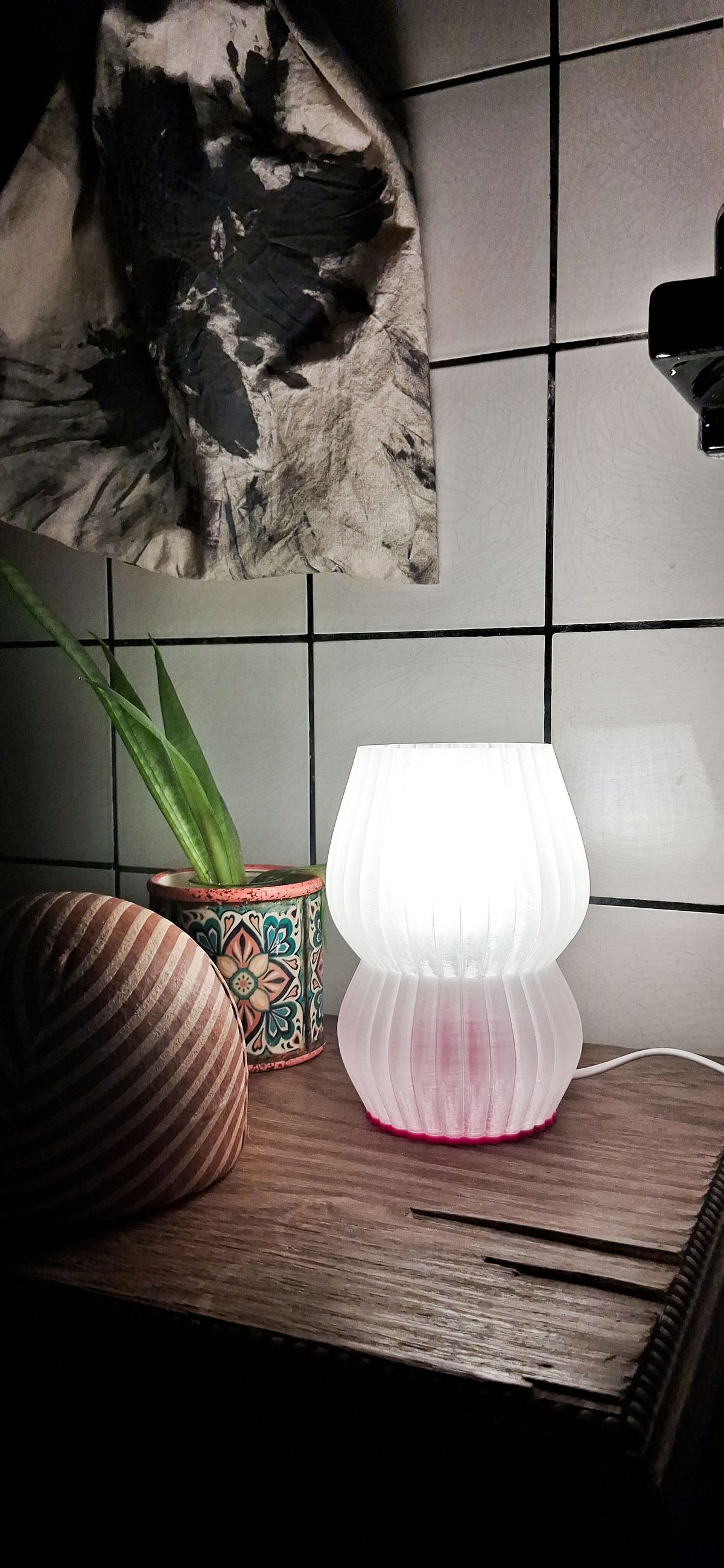 Lámpara hecha en impresión 3d, con filamentos PLA de bioplastico (hechos con el descarte de la caña de azúcar y otras cosechas).♻️