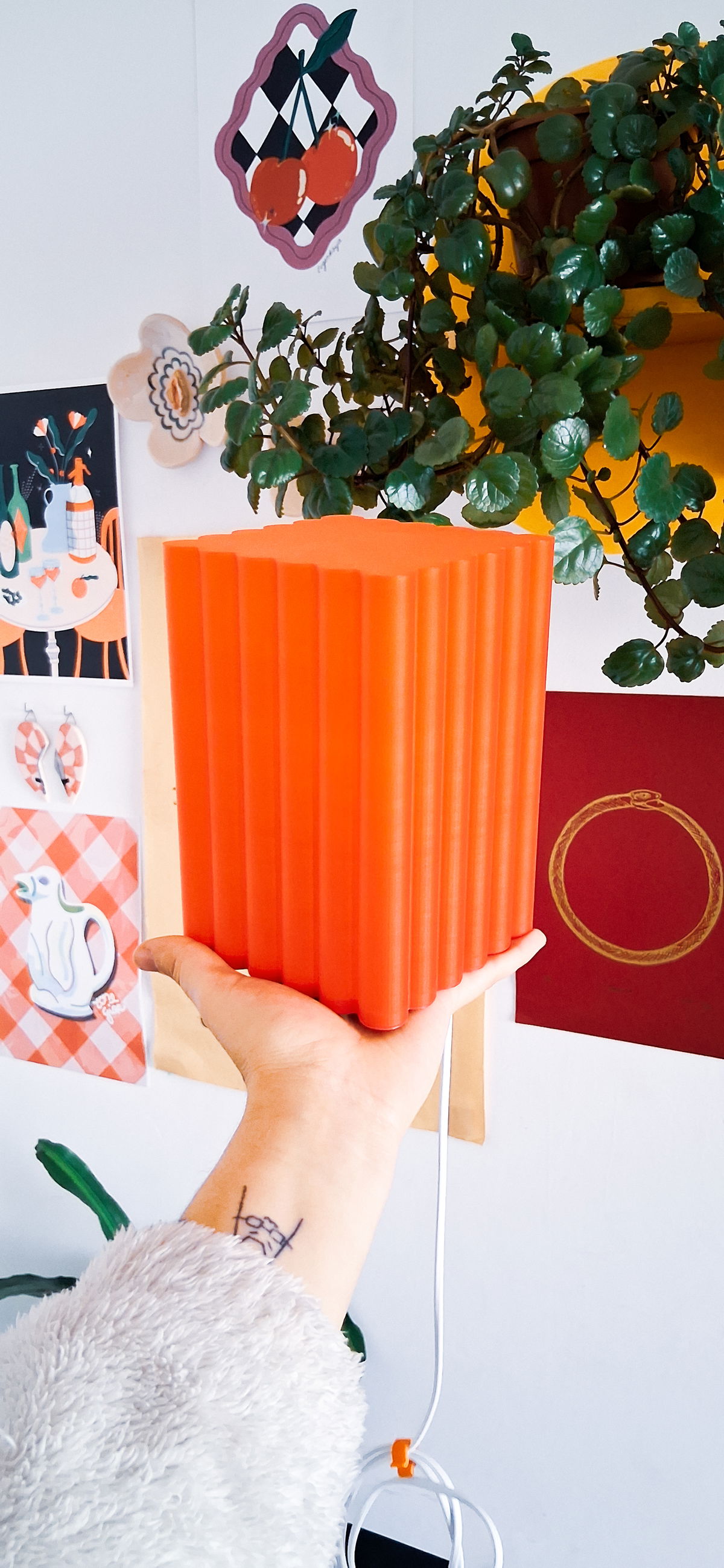 Lámpara hecha en impresión 3d, con filamentos PLA de bioplastico (hechos con el descarte de la caña de azúcar y otras cosechas).♻️