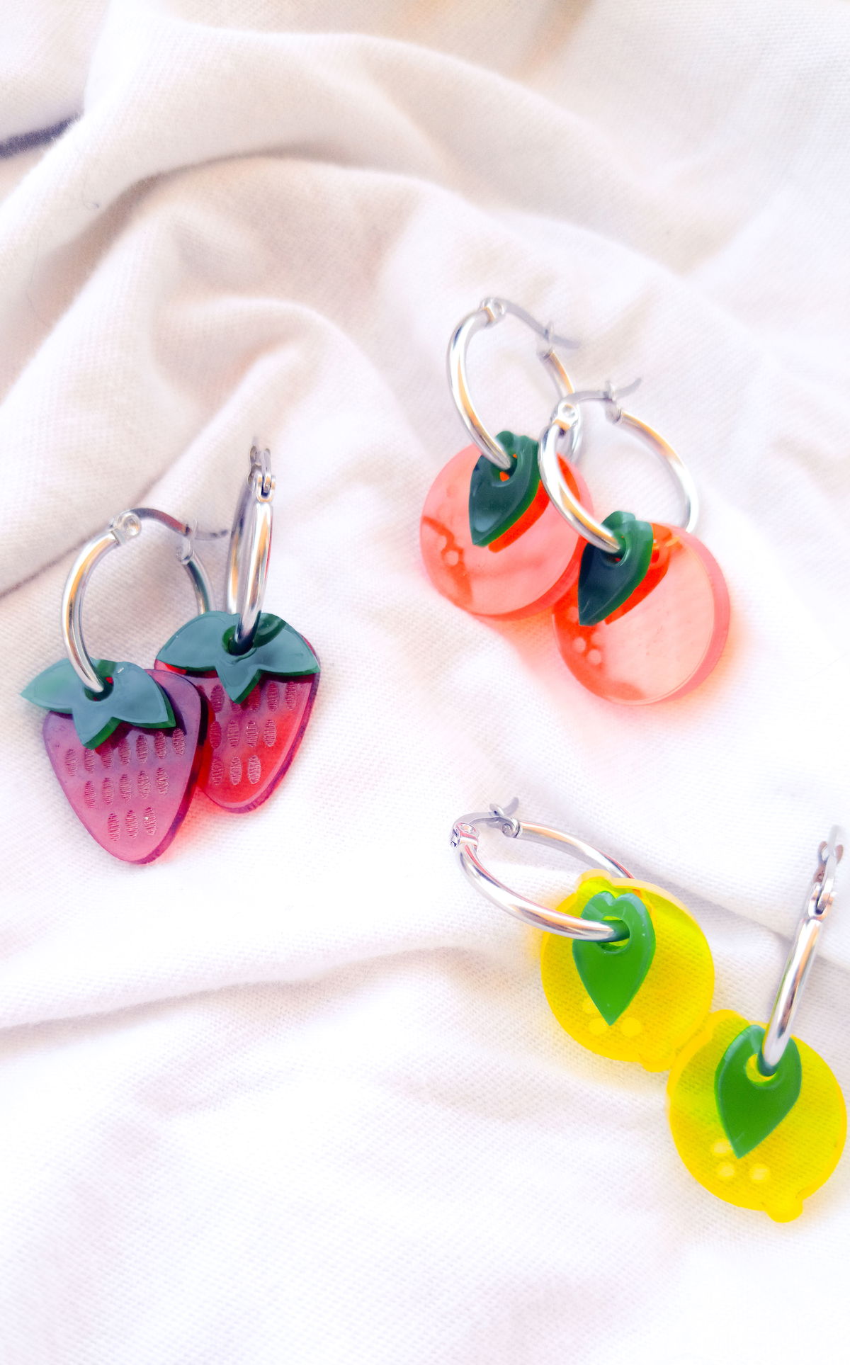 Aros de acrílico con grabado, pasantes de acero quirúrgico de 20mm de diámetro.
