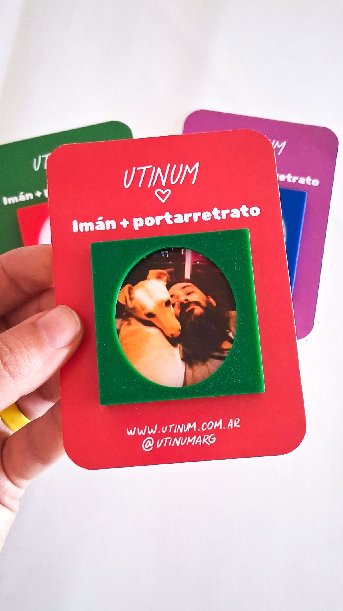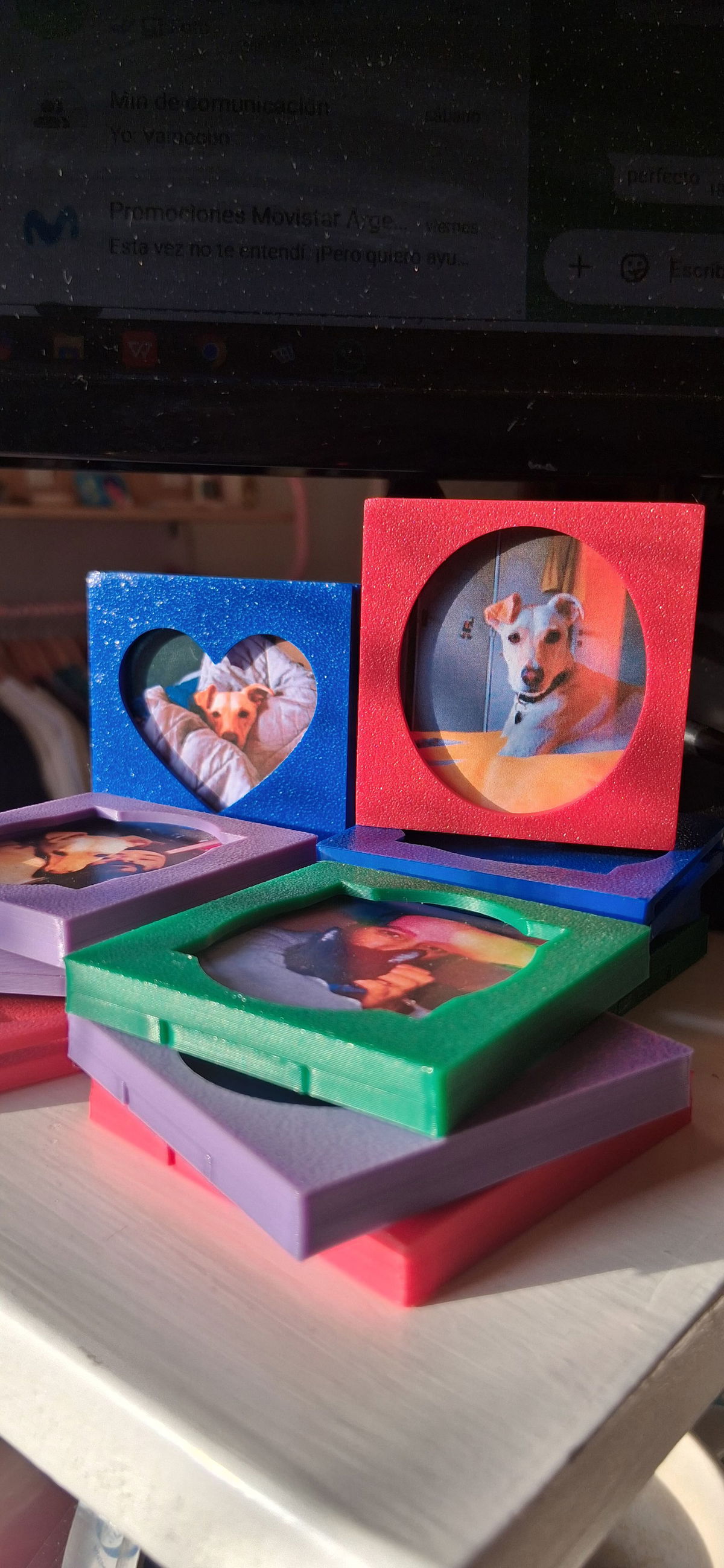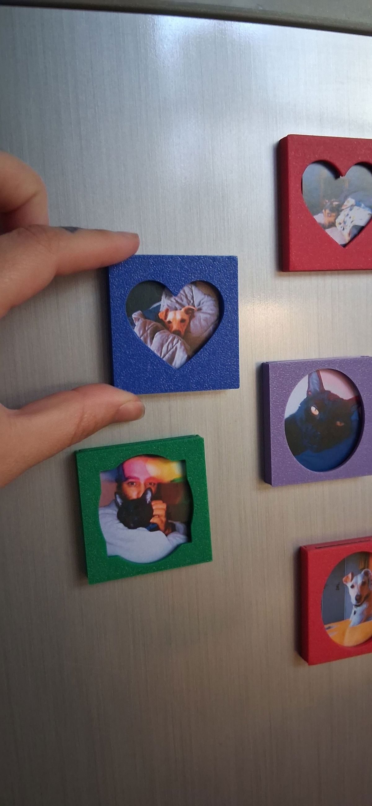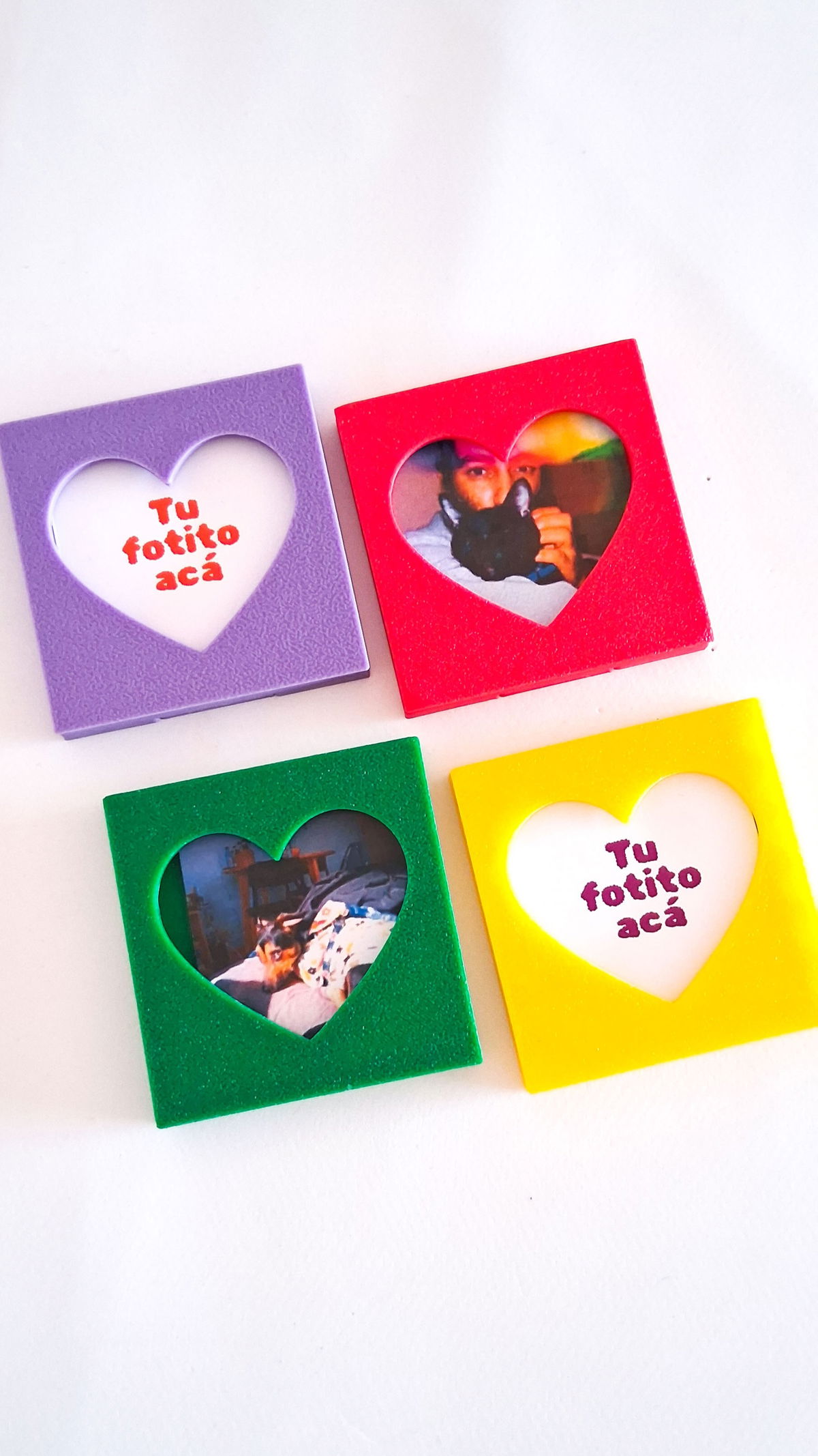 Pequeños portarretratos con imanes en la parte trasera. Al ser imanes de neodimio se super adhieren!!