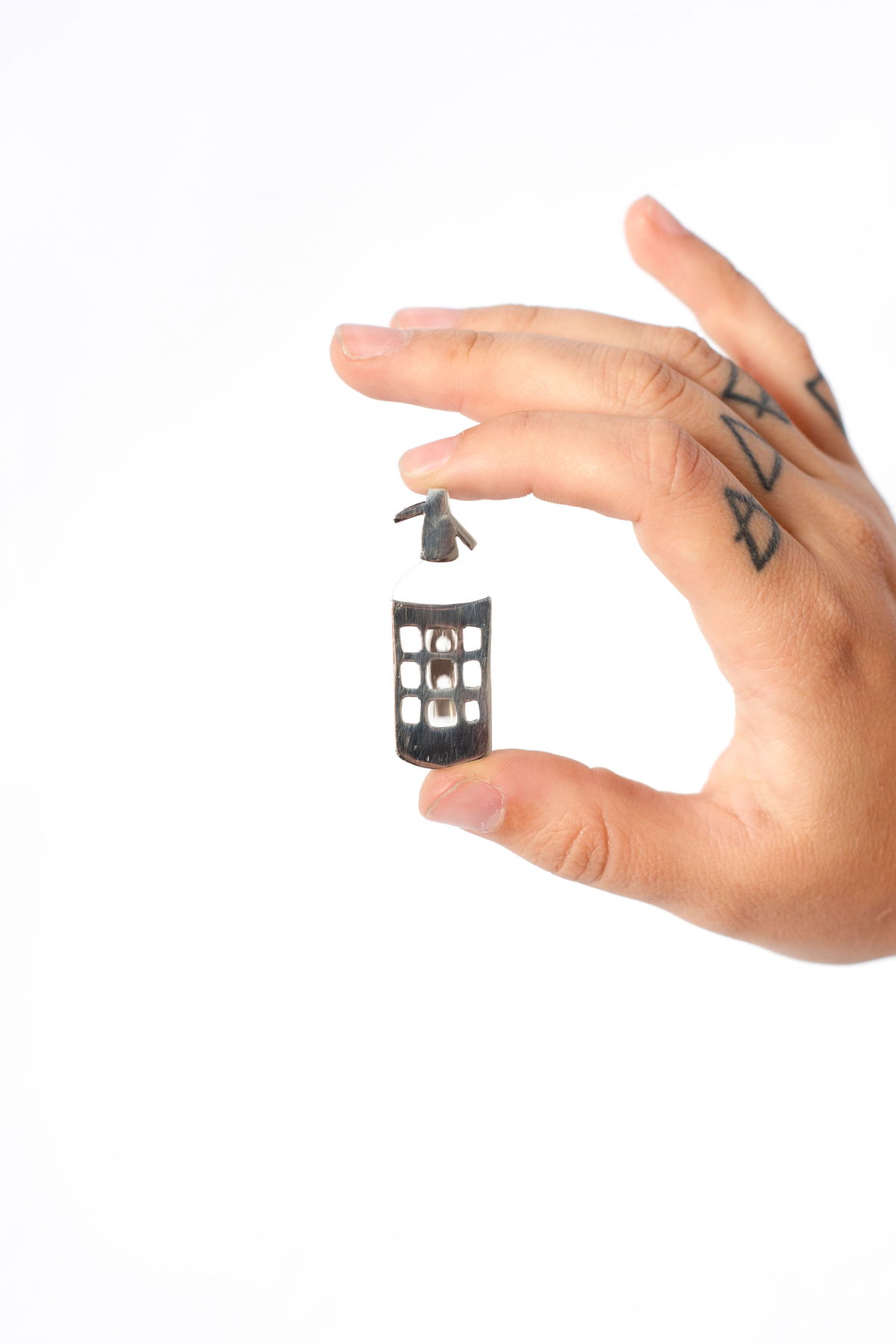 Sifon con base acrílica y apliques de alpaca calados y pulidos a mano.